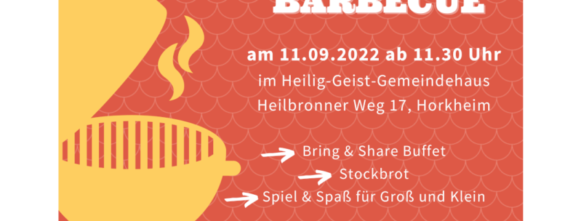 Am Sonntag, 11. September findet im Gemeindehaus Heilig Geist in Horkheim ab 11:30 Uhr ein Familien-Barbecue statt mit Spiel und Spaß für Groß und Klein.