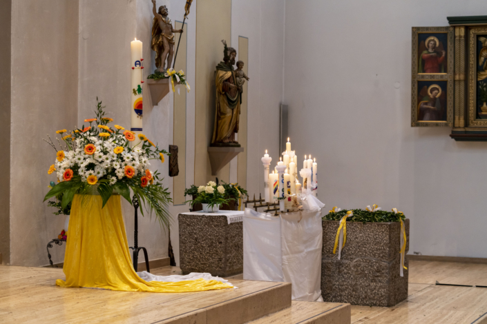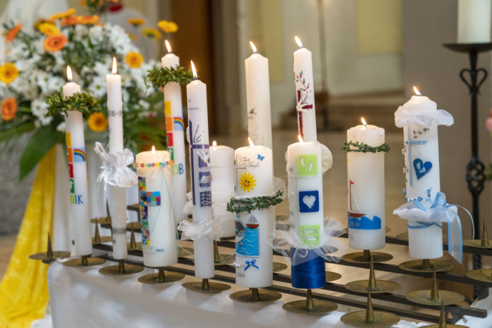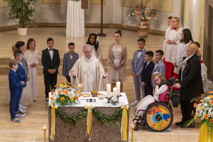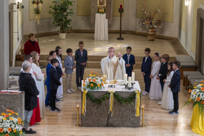 In der Regel am ersten oder zweiten Sonntag nach Ostern feiern die Kinder der dritten Klasse ihre Erstkommunion. Zum ersten Mal empfangen sie dabei die Heilige Kommunion. Diesem großen Fest geht eine Zeit der Vorbereitung voraus, die im Herbst beginnt.