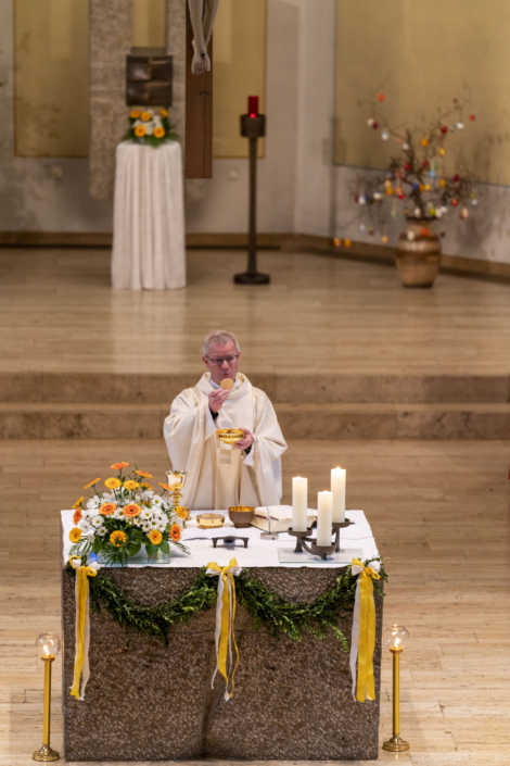 Jedes Mal, wenn wir sonntags Eucharistie feiern und die Kommunion empfangen, sind wir Gott auf besondere Weise nahe. Wir schöpfen neue Kraft und sagen Danke: für die Gemeinschaft, für den Rückhalt, für die Zuflucht, für alles, was uns am Herzen liegt. Wenn Christen miteinander Eucharistie feiern, ist das sozusagen eine Zeitreise zurück als Jesus vor 2000 Jahren mit seinen Jüngern Abendmahl feierte. In der Mahlgemeinschaft begegnen wir Gott für uns persönlich, aber gleichzeitig sind wir auch Teil der Gemeinde. Auch nach außen machen wir dabei deutlich: Wir gehören zu Gott und wir haben einen Auftrag.