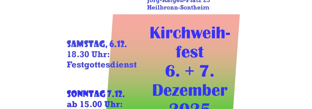 Am Samstag, den 6. Dezember findet um 18.30 Uhr ein Festgottesdienst statt, am Sonntag, den 7. Dezember lädt der Sontheim-Ost-Ausschuss ab 15.00 Uhr zu einem Nachmittagskaffee ein. Herzliche Einladung!