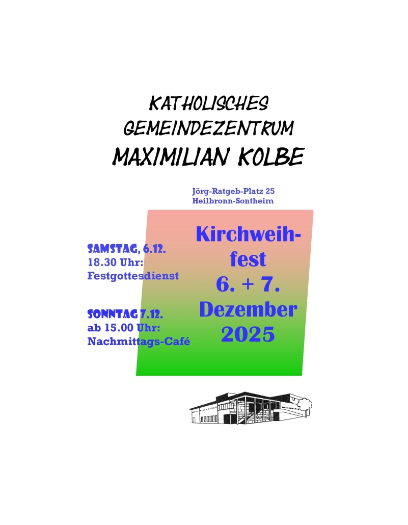 Am 2. Advent feiern wir wieder die Einweihung unserer St.-Maximilian-Kolbe-Kirche und des Gemeindezentrums.