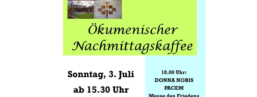 Am Sonntag, den 3. Juli lädt ab 15:30 Uhr der Sontheim-Ost-Ausschuss unserer Gemeinde zusammen mit der evangelischen Bonhoeffergemeinde zu einem ökumenischen Nachmittagskaffee unter dem Kastanienbaum der Bonhoeffergemeinde ein.
